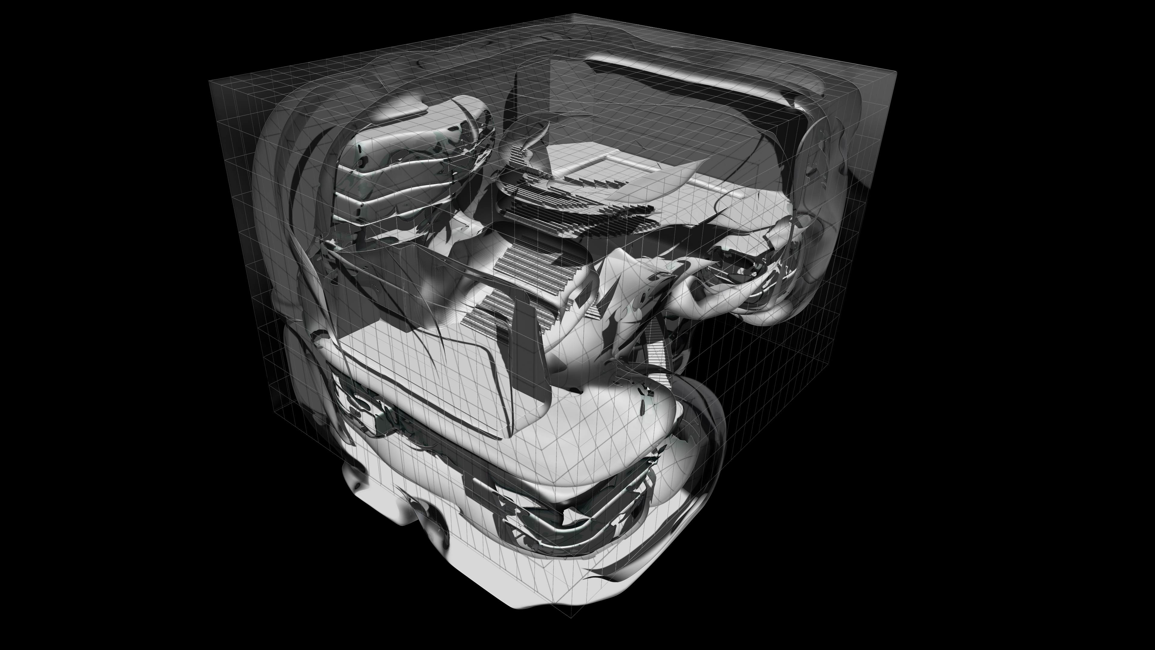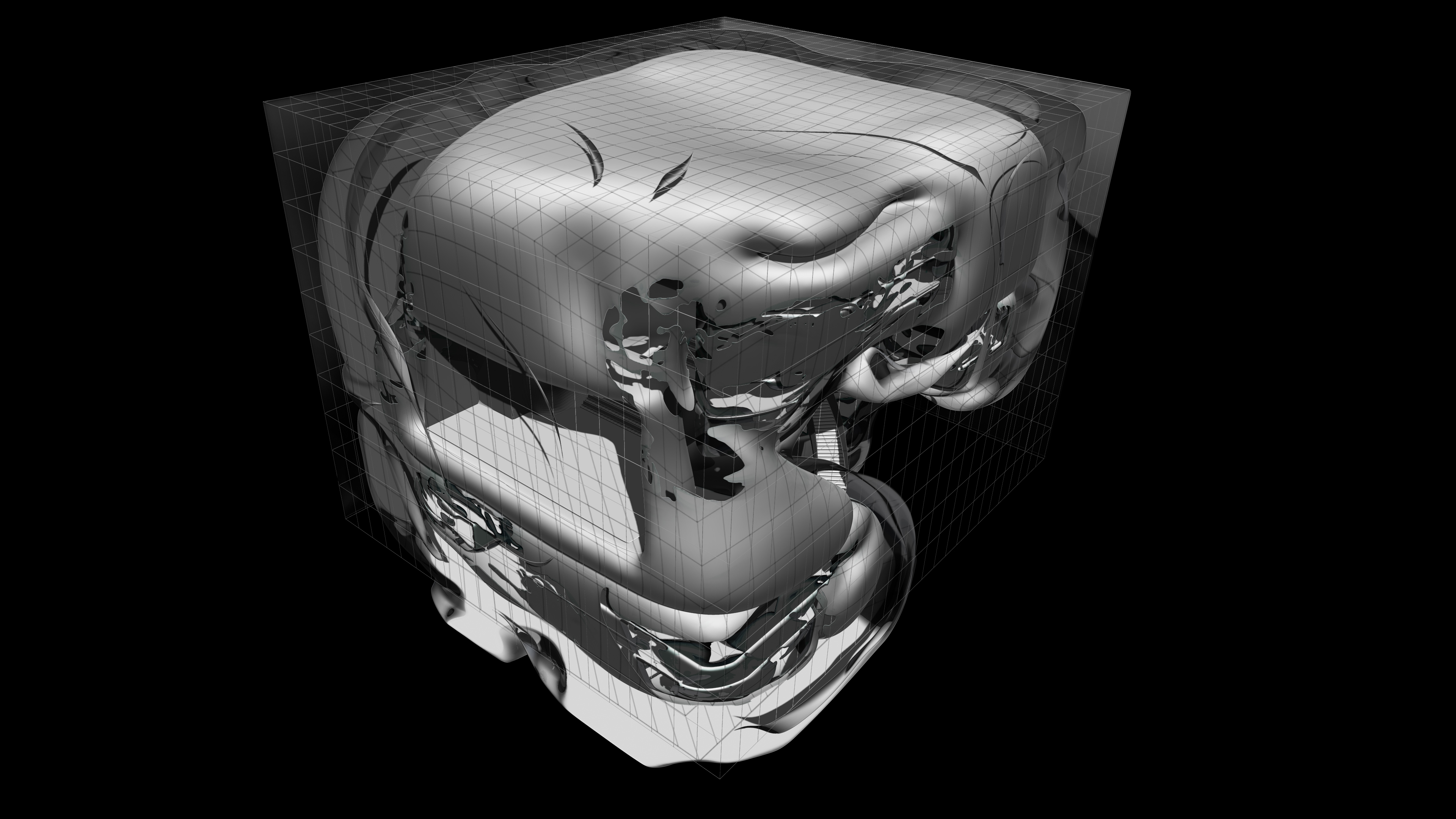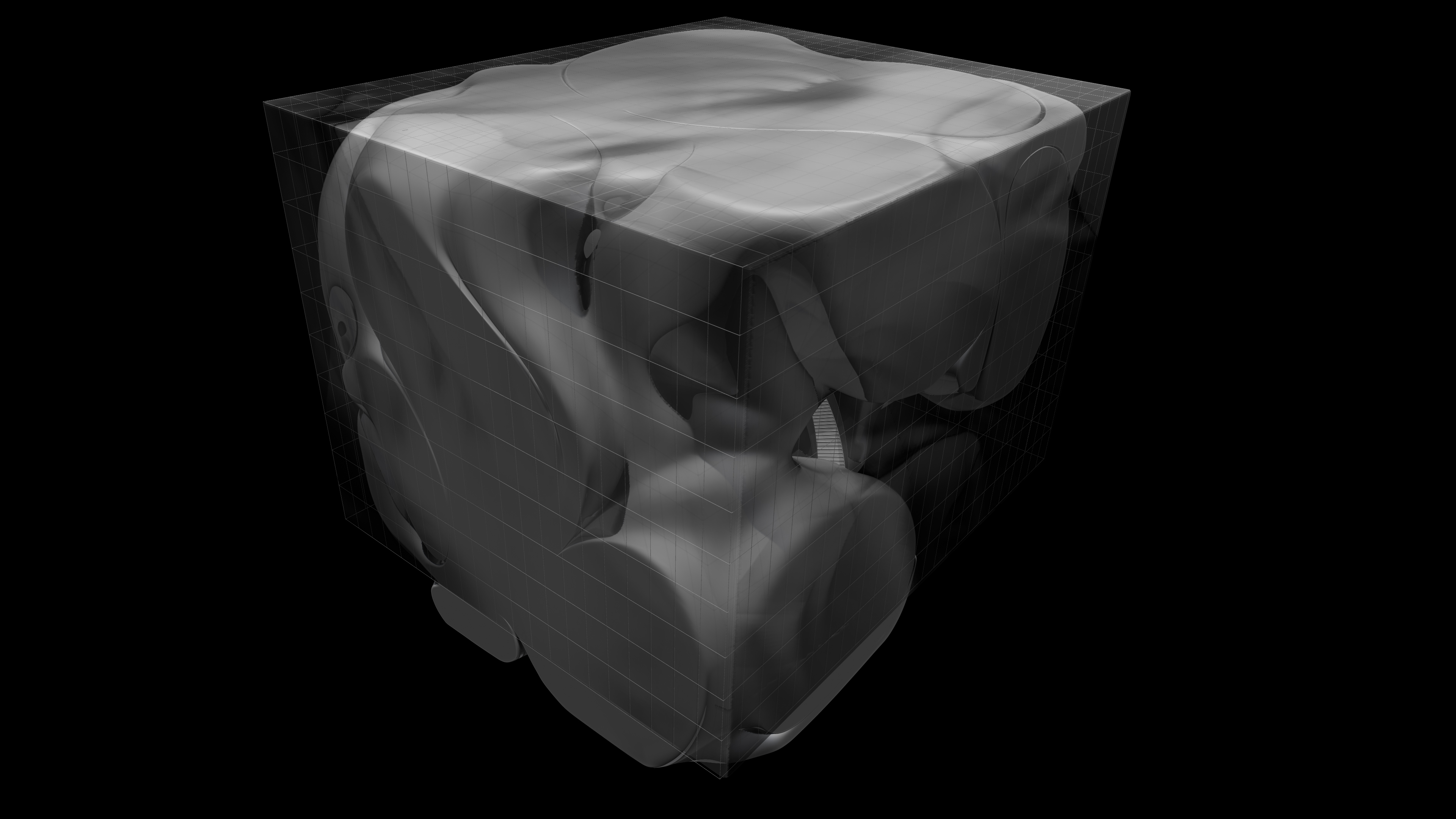 The exterior is through pressing skin onto a flat surface, and the interior is made of the resulting leftover wrinkled and squished skin like form. The soft and supple qualities of skin were further exploited with the superimposed lighting effects. The lighting technique withdrew and imbued emphasis on the abrupt change of pressed and squished flesh.